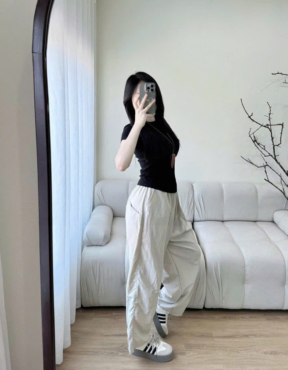 SIZE S: NGỰC 74 ,EO 62 ( THUN ÁO CO GIÃN) , DÀI ÁO 49, EO QUẦN LƯNG THUN, DÀI QUẦN 96CM