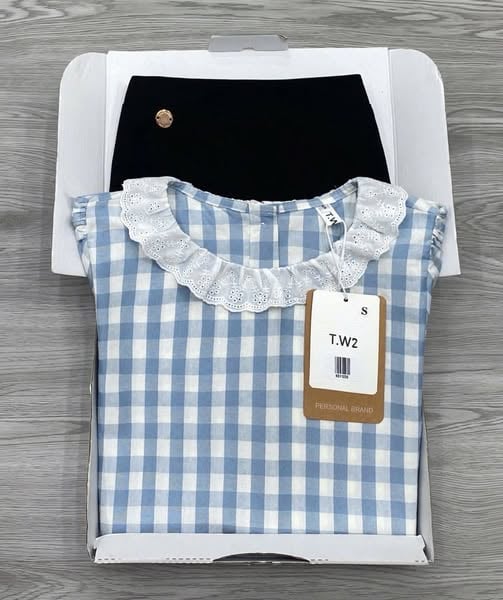 KS1123 - SET ÁO CARO XANH + C.VÁY DÀI
