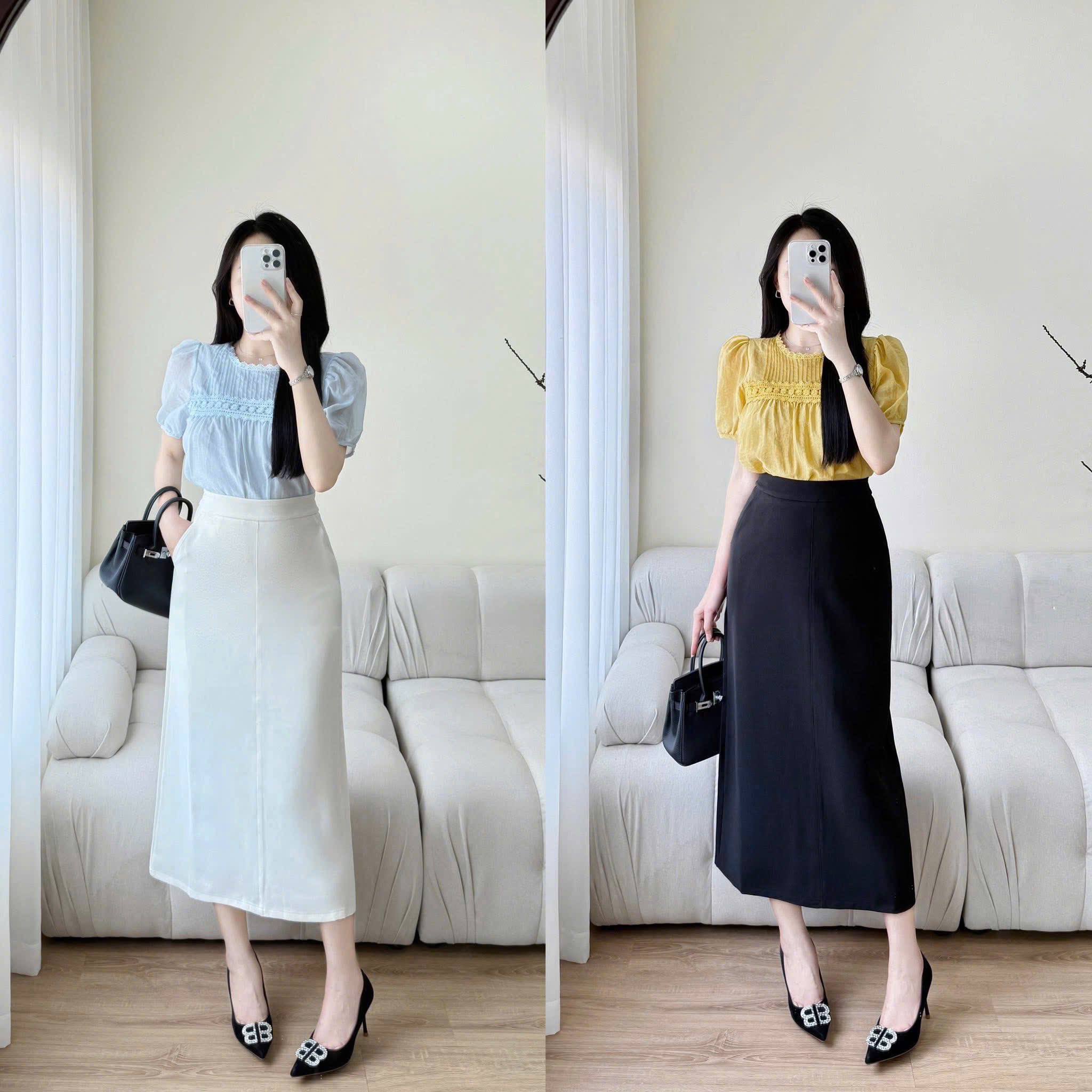 TB7583 SET ÁO CỔ VUÔNG CHÂN VÁY DÀI (ĐEN)