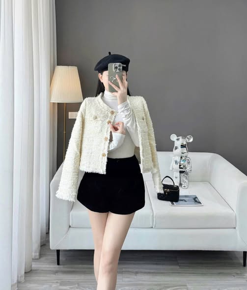 KS1506 - ÁO KHOÁC DẠ CAOCAP TRẮNG KEM (ÁO LẺ)