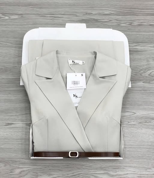 KS1522 - ĐẦM DÀI CỔ VEST XÁM (KÈM NỊT)