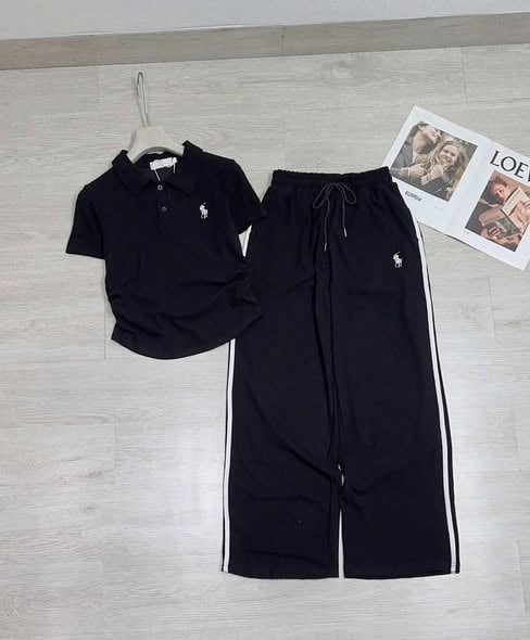 KS1553 - SET THỂ THAO THÊU NGỰA PHỐI SỌC (ĐEN)