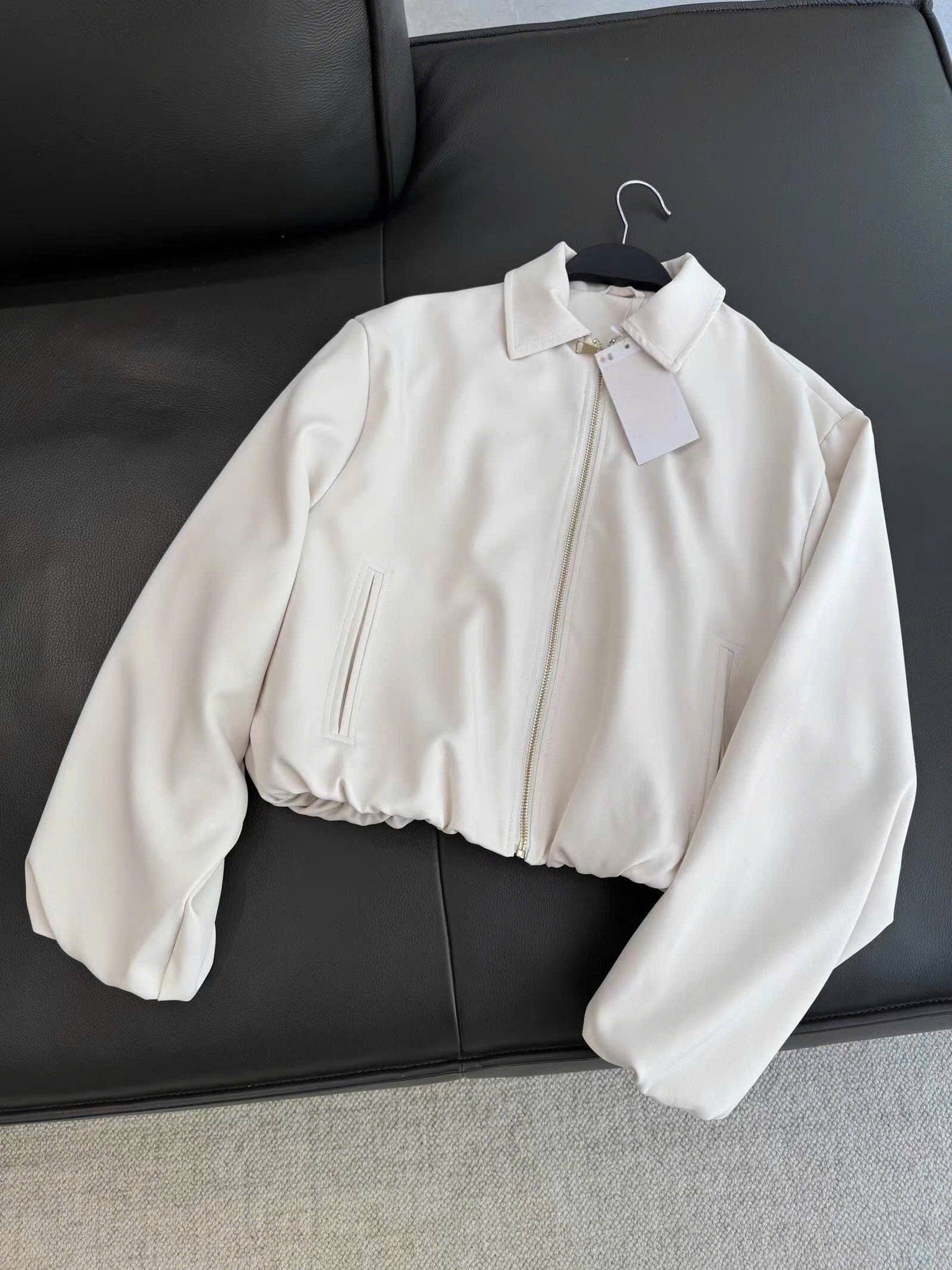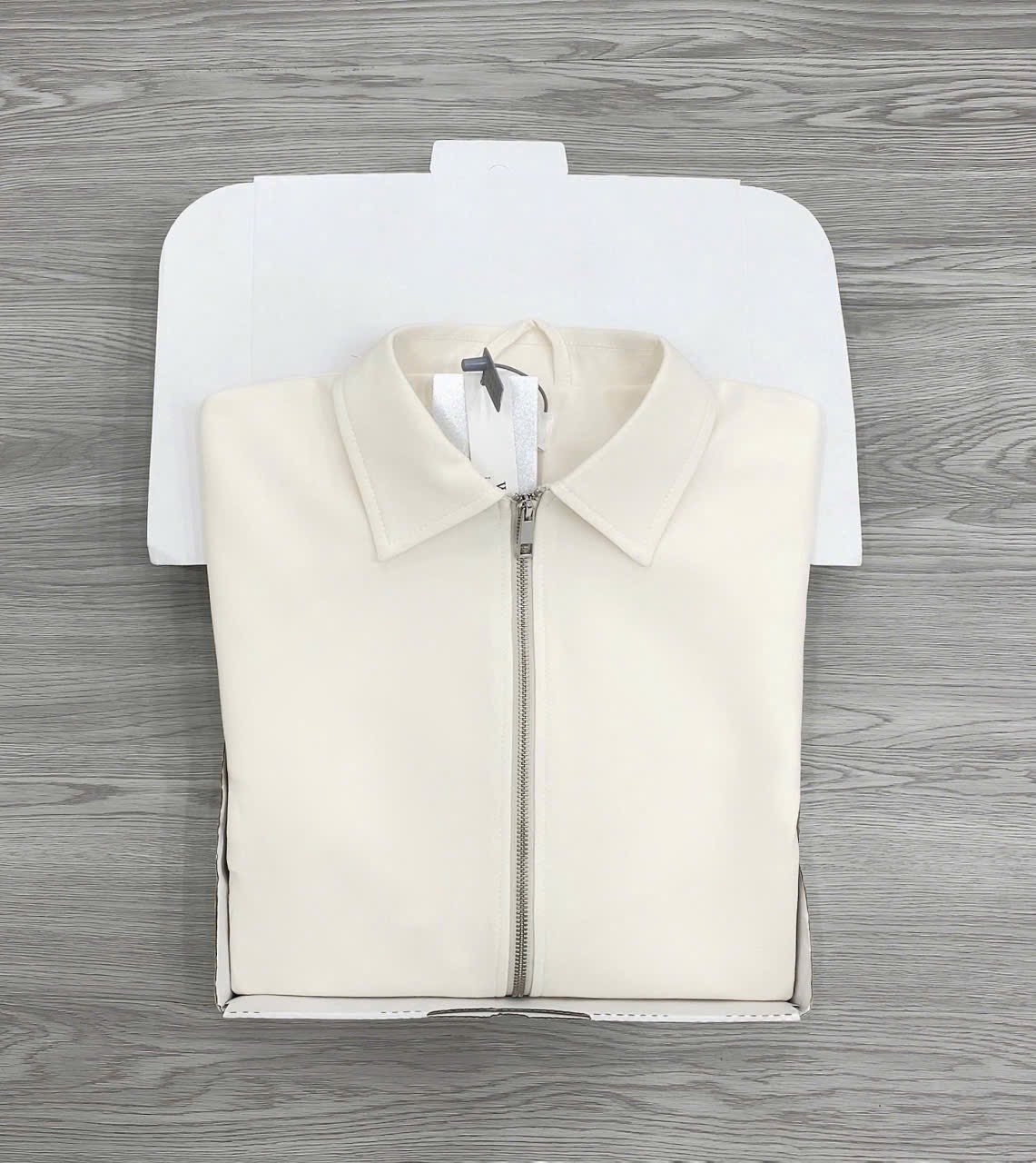 KS1581 - ÁO KHOÁC PHỐI KHÓA KÉO (KEM)