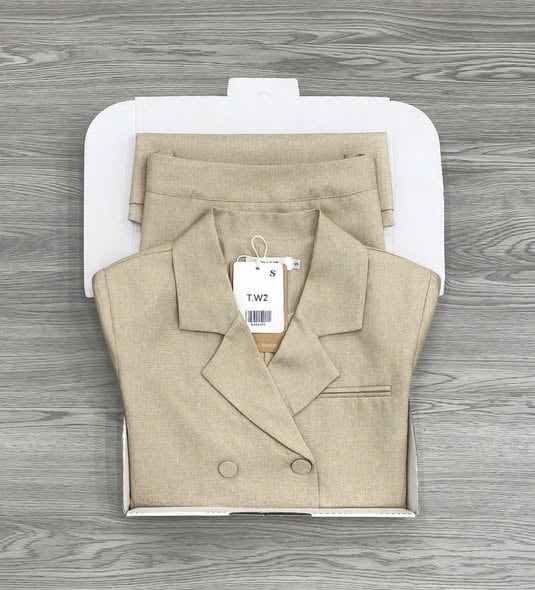 KS1642 - SET VEST FORM NGẮN NÚT BỌC (MÀU DA)