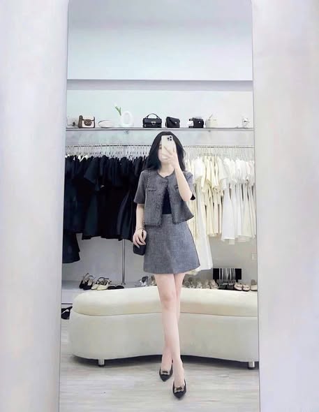 KS1645 - SET DẠ XÁM MUỐI TIÊU VIỀN TUA RUA (KHÔNG KÈM ÁO TRONG)
