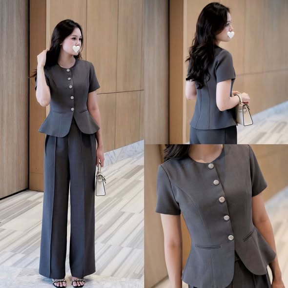 SIZE S: NGỰC ÁO 87, EO ÁO 68, DÀI 56, EO QUẦN 66, DÀI 101, NGANG ỐNG 27CM