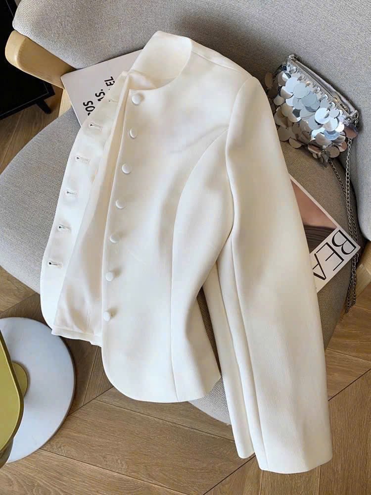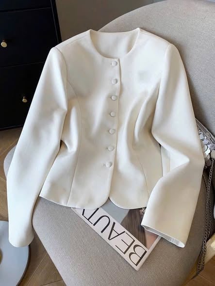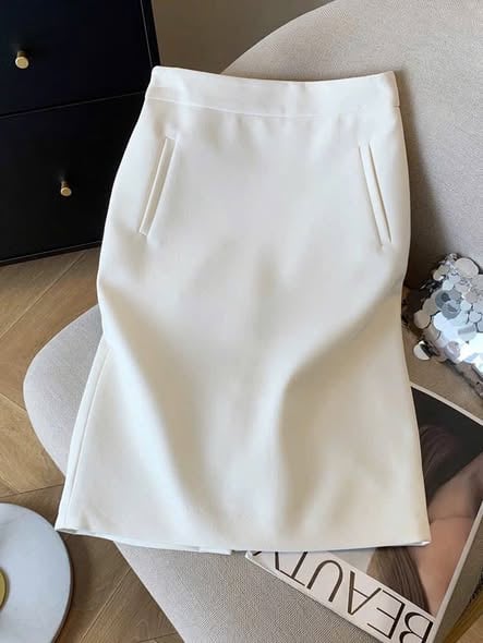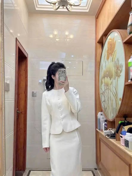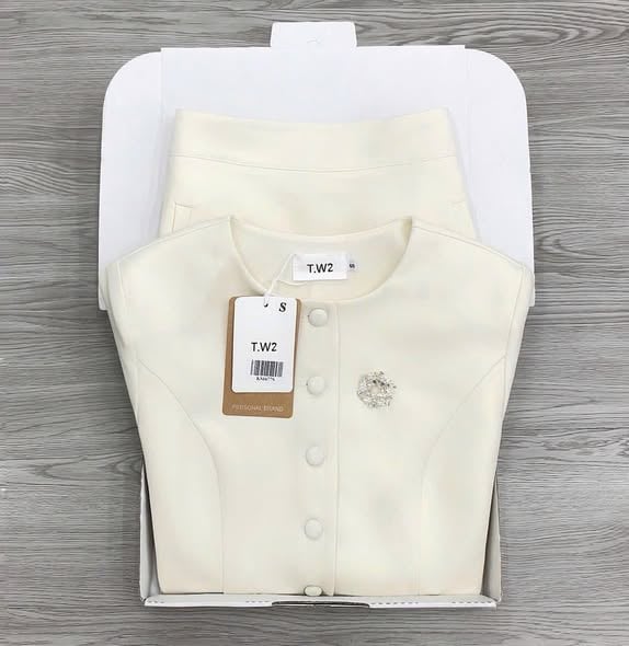 KS1677 - SET ÁO PHỐI NÚT BỌC, VÁY DÀI - KÈM TAG (KEM)