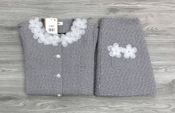 KS1737 - SET DẠ TWEED CAO CẤP ĐÍNH HOA (XÁM MUỐI TIÊU)