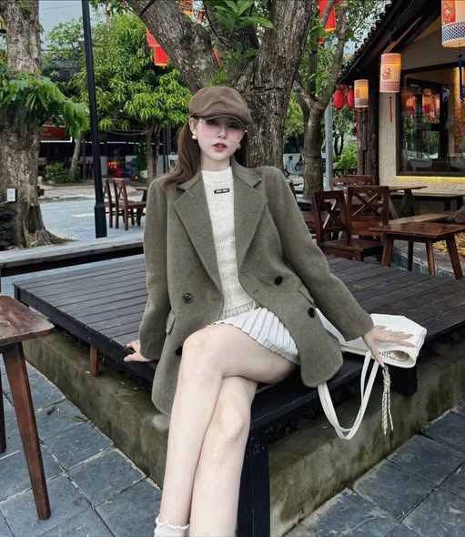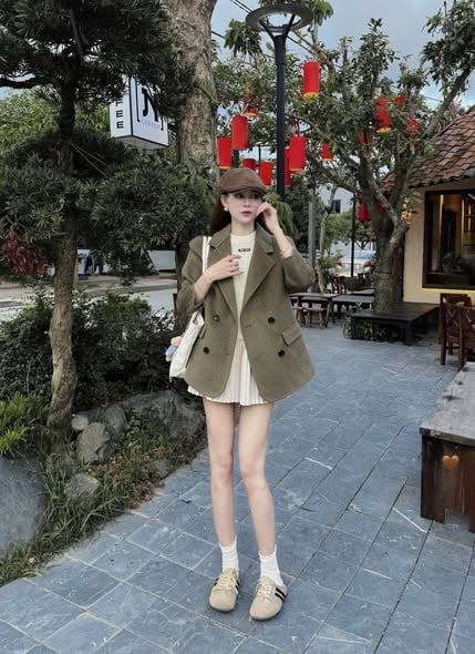 KS1821 - ÁO KHOÁC DẠ PHỐI NÚT (NÂU)