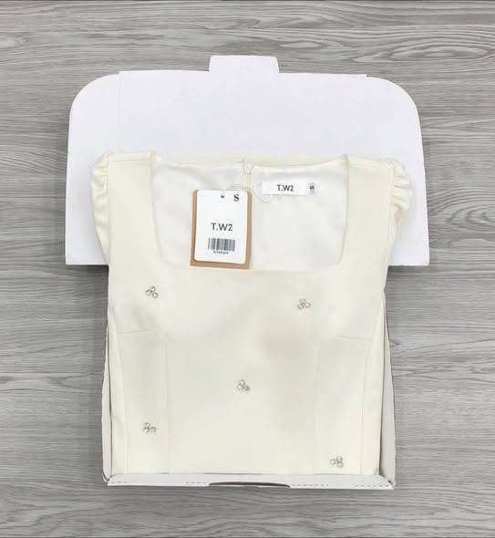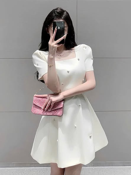 KS1846 - ĐẦM NGẮN CỔ VUÔNG ĐÍNH ĐÁ (KEM)