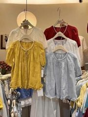 LEN3131 Áo hoa thêu chân bèo Kem 886601