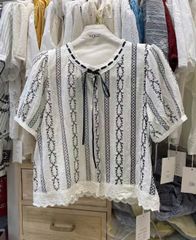 LEN3593 Áo ht dọc chân ren cổ nơ 92232
