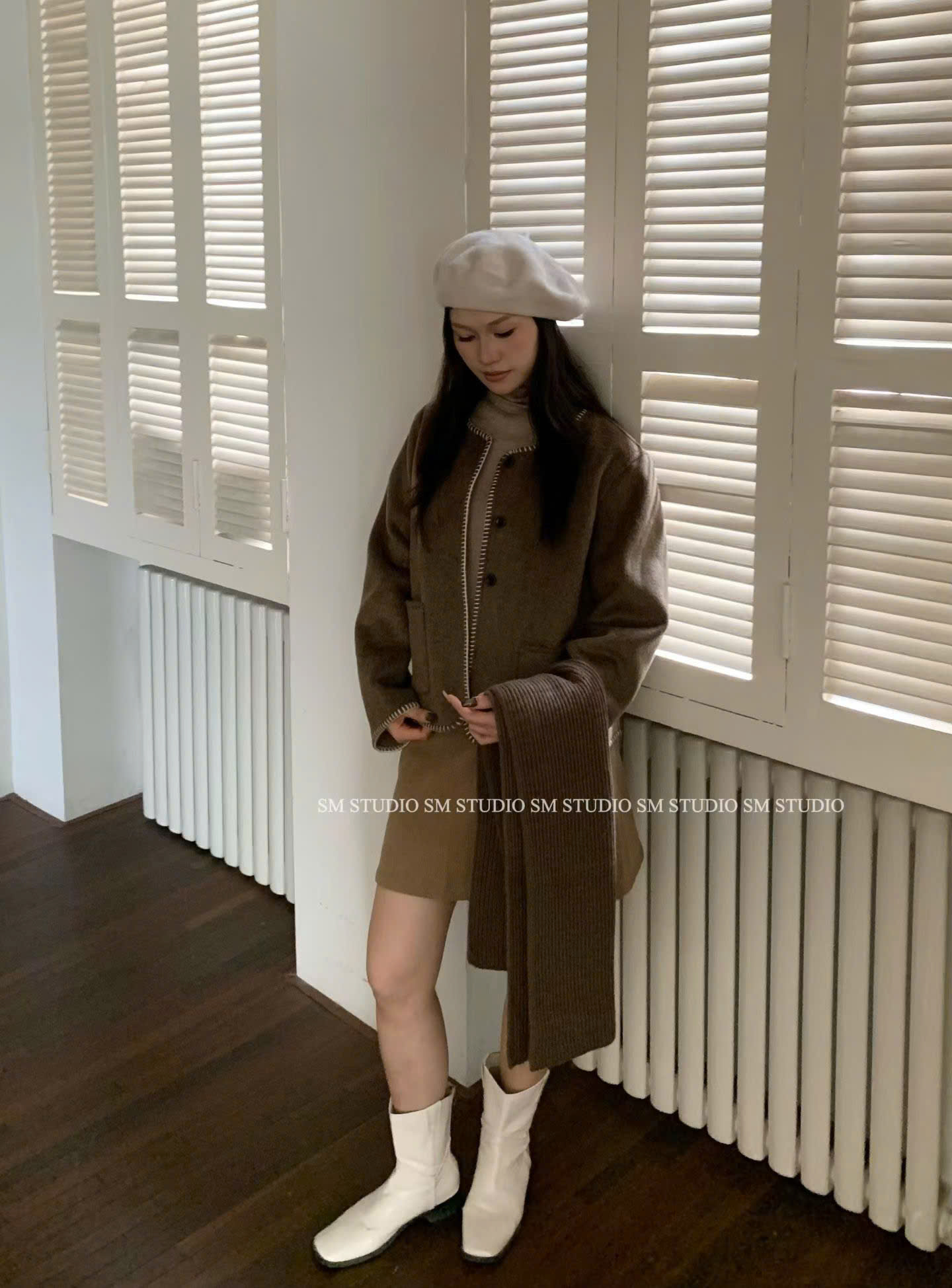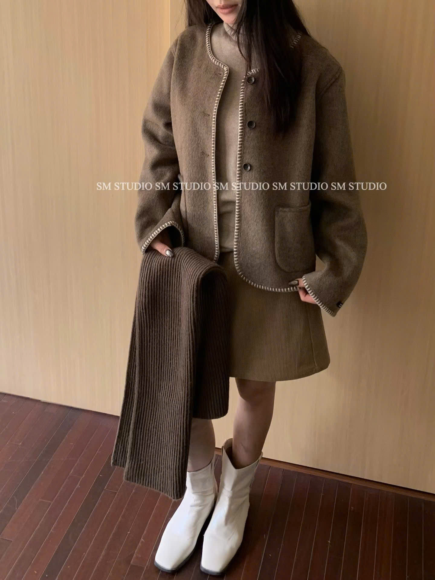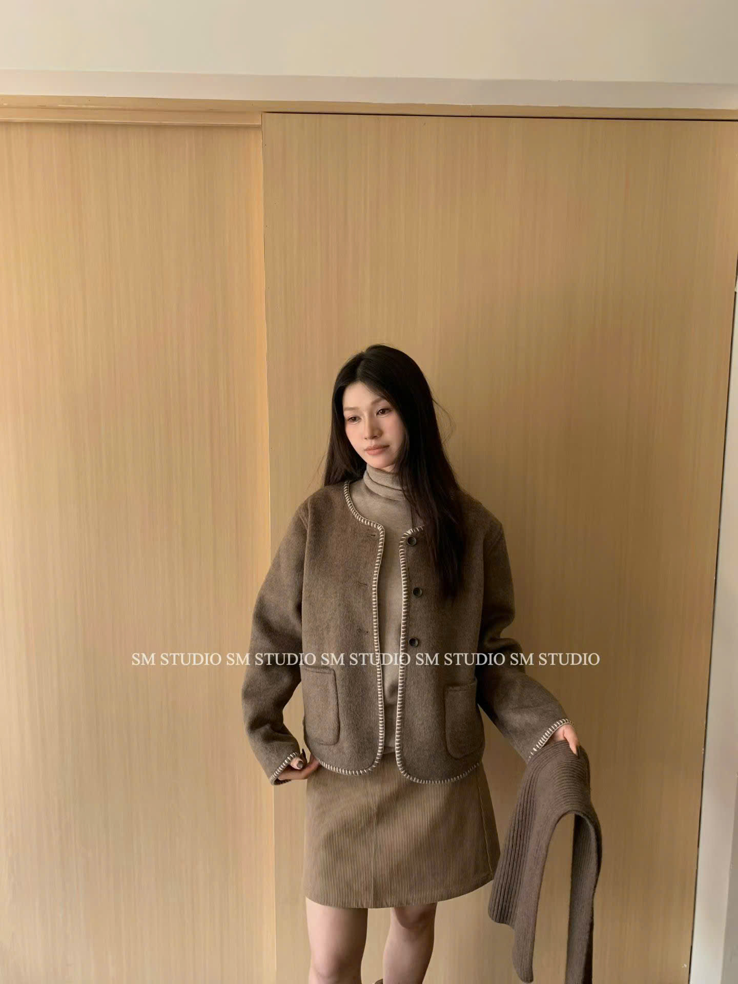 LEN4617 KHOÁC DẠ ÉP CHẠY VIỀN PHỐI TÚI (NÂU)