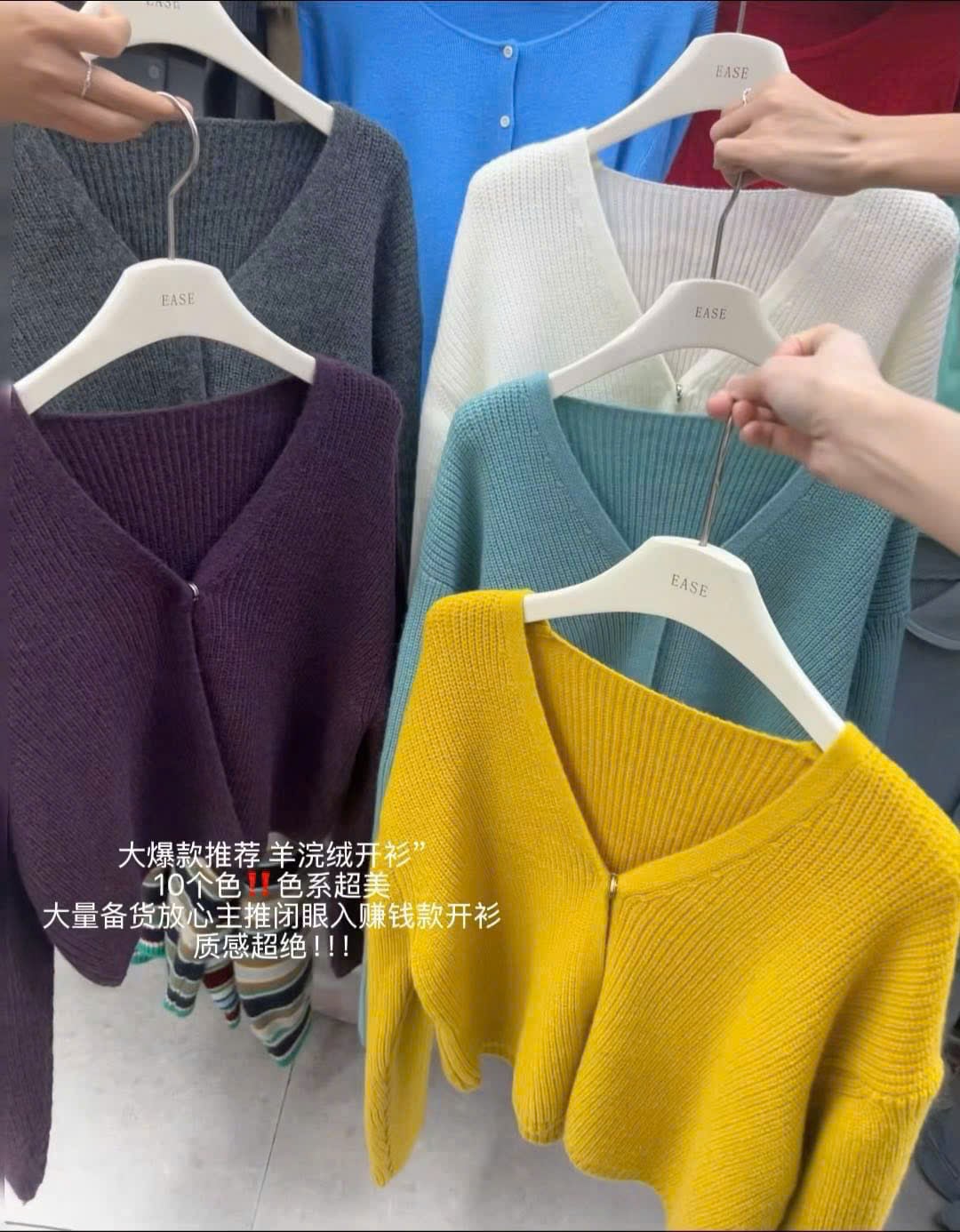 LEN4779 KHOÁC LEN BASIC CỔ V (KEM)