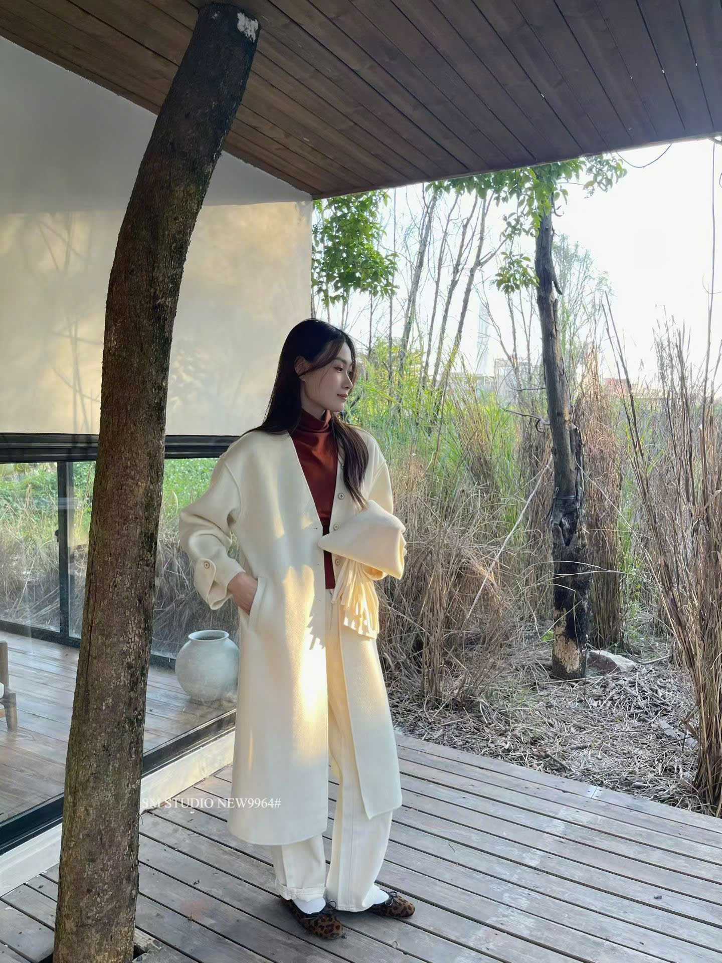 LEN4791 KHOÁC DẠ ÉP DÁNG DÀI + CHOÀNG (KEM) 9964