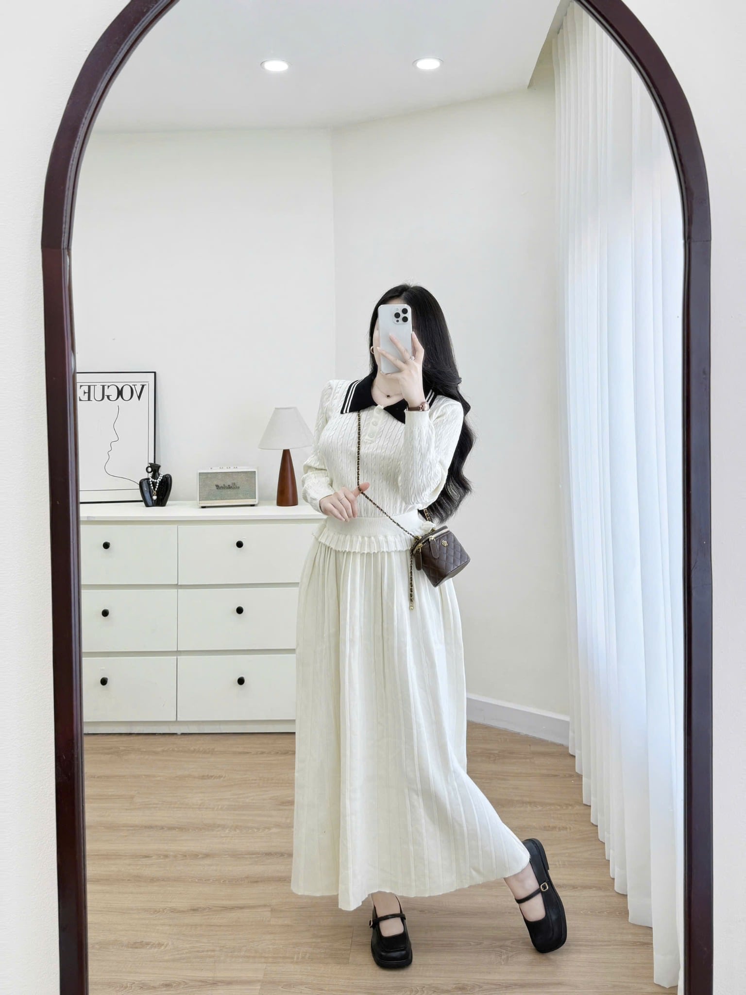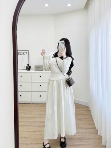 FREESIZE: Ngực 94, Dài áo 51, Eo bo chun, Dài váy 90cm