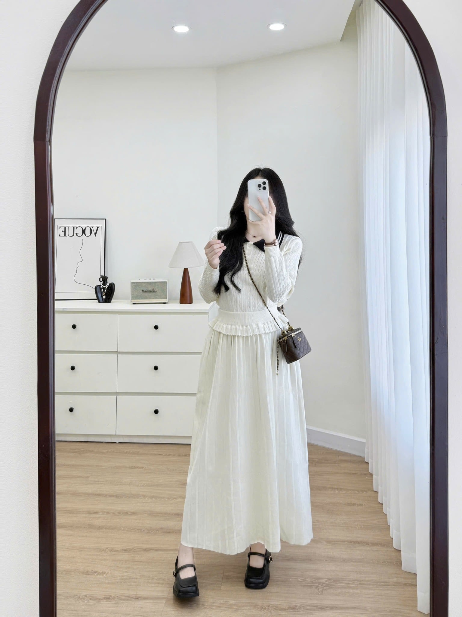 LEN4830 SET LEN POLO - CV DÀI VIỀN BÈO (KEM)