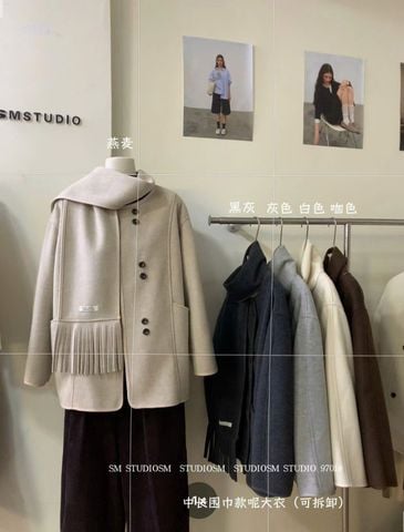 LEN4877 KHOÁC DẠ LỬNG NÚT ĐÔI + CHOÀNG (KEM) 9701