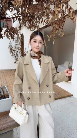 LEN5072 KHOÁC DẠ ÉP NHŨ CỔ VEST FORM NGẮN (NÂU) 983-208