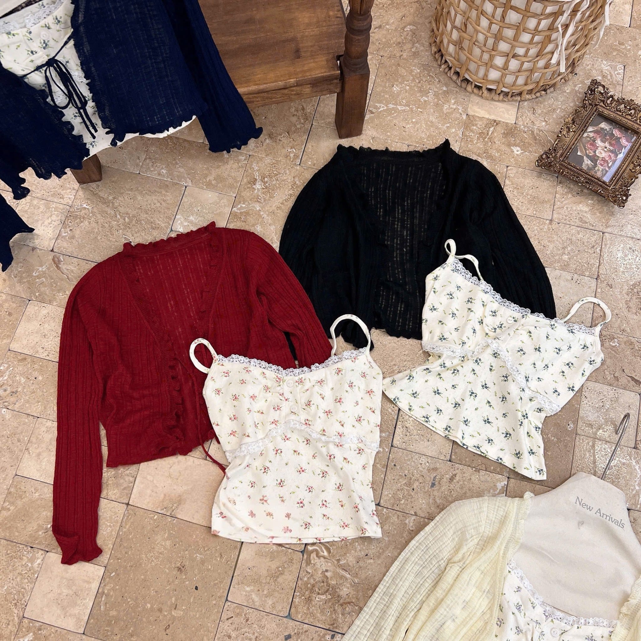 LEN5102 KHOÁC LEN (ĐỎ) + ÁO DÂY HOA NHÍ 3637