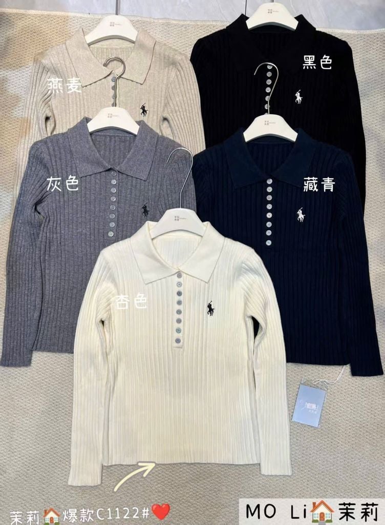 LEN5234 POLO NGỰA LEN GÂN TAY DÀI (XĐEN) C1122