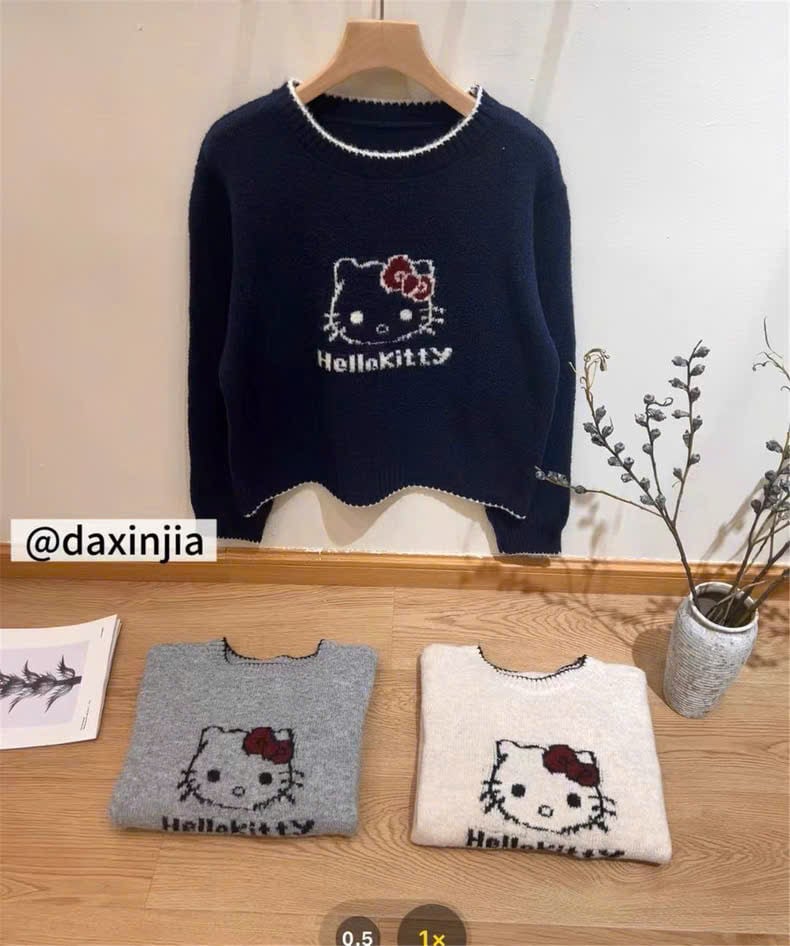 LEN5250 ÁO LEN MÈO KITTY CHẠY VIỀN (XÁM)