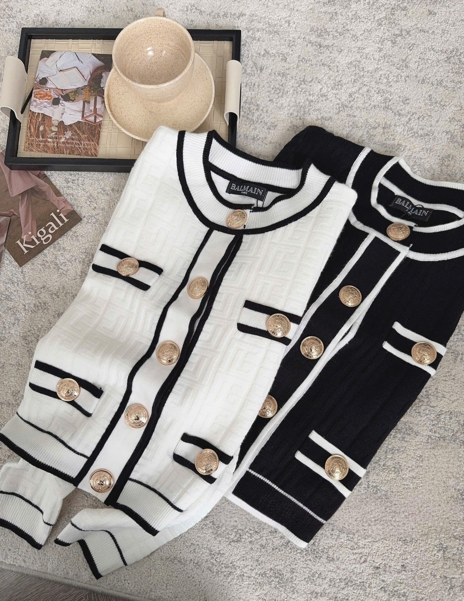 LEN5518 ÁO LEN NÚT ĐỒNG PHỐI VIỀN (ĐEN) 652