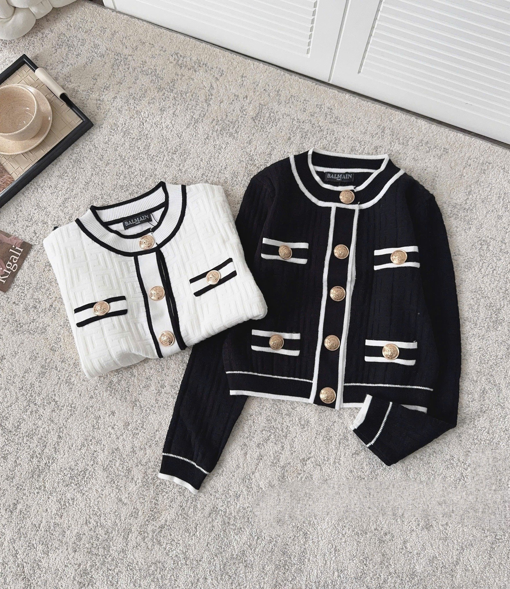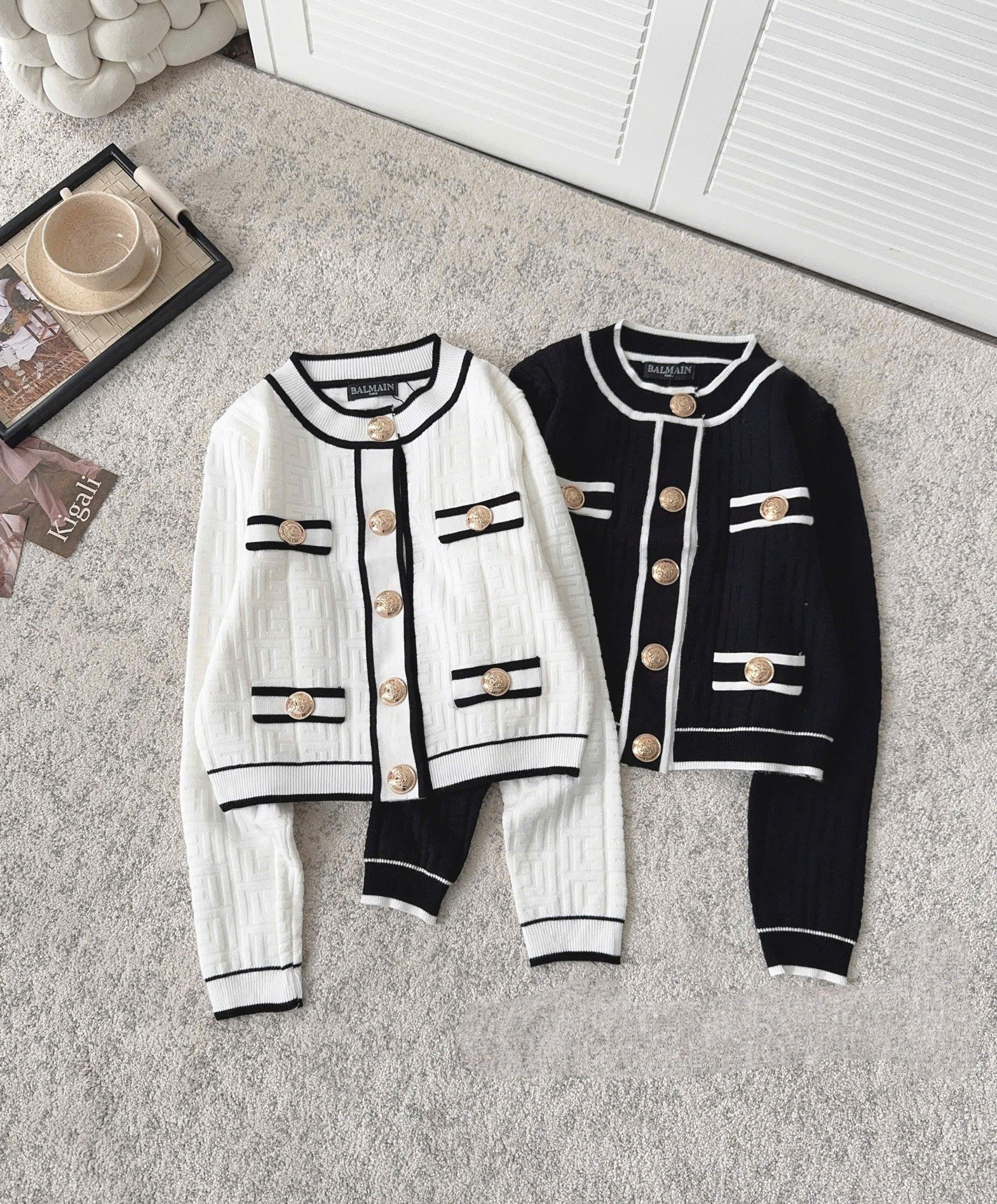 LEN5519 ÁO LEN NÚT ĐỒNG PHỐI VIỀN (KEM) 652