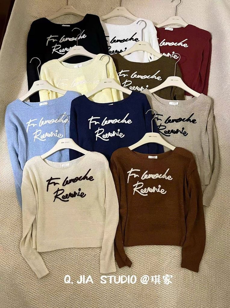 LEN5625 - ÁO LEN TAY DÀI THÊU CHỮ - MÀU XANH