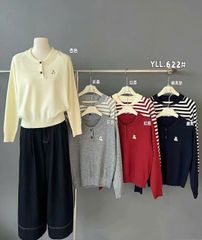 LEN5629 - ÁO LEN TAY DÀI THÊU GẤU 622 - MÀU ĐỎ SỌC KEM