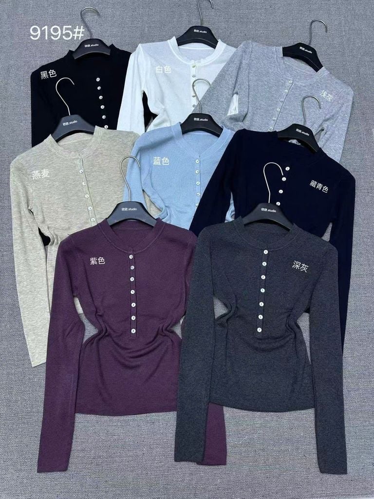 LEN5636 - ÁO LEN TAY DÀI PHỐI NÚT 9195 - MÀU XANH