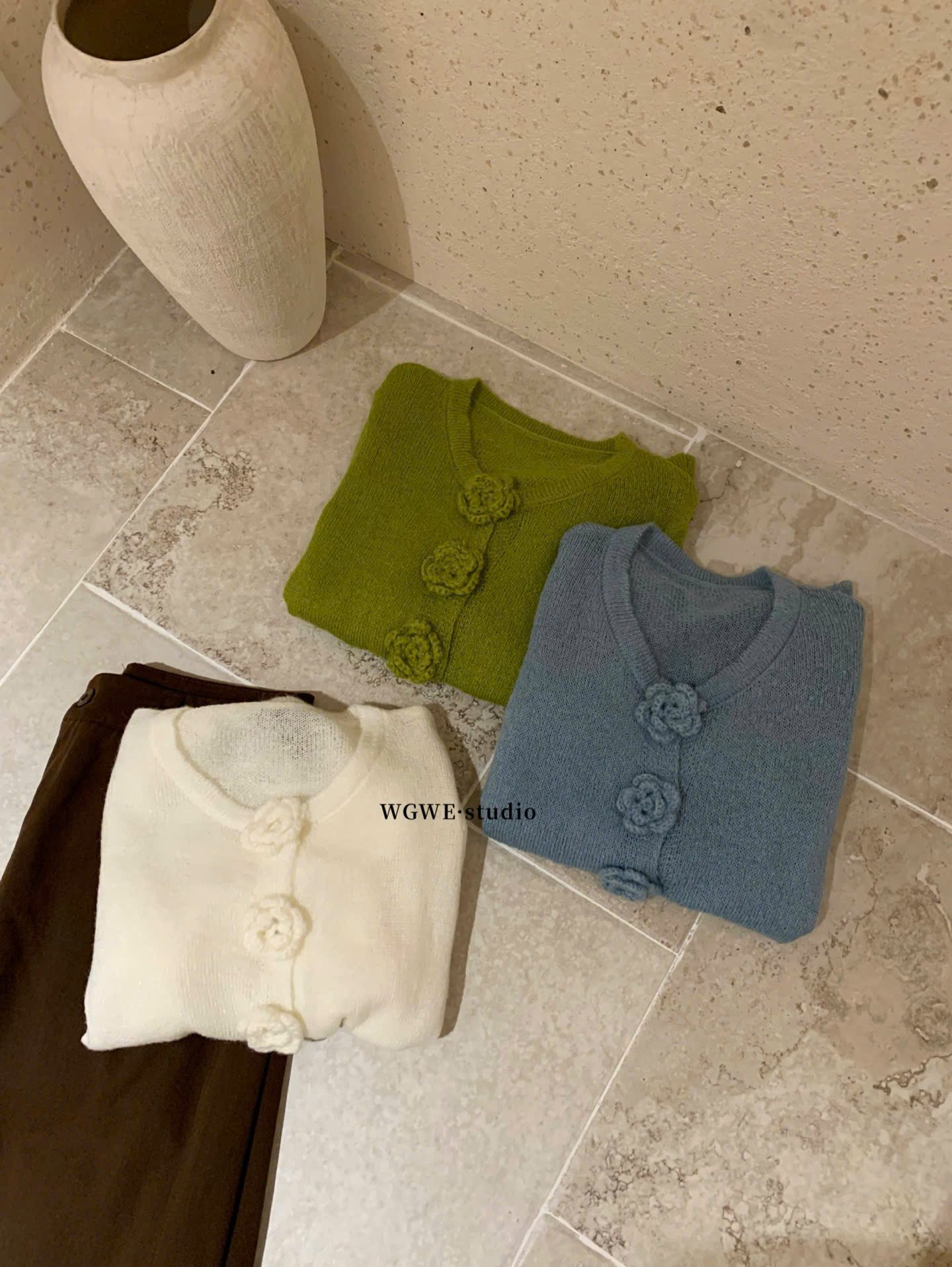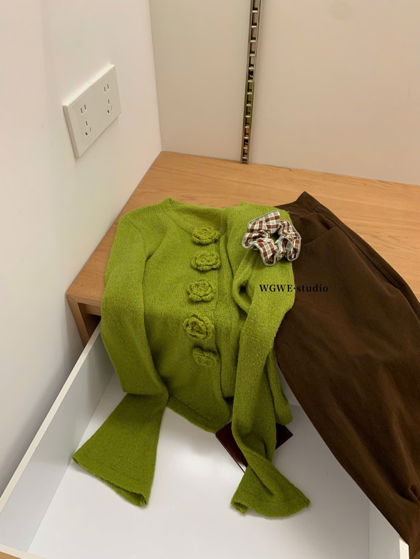 LEN5643 - LEN MỎNG TAY DÀI NÚT BẤM HOA 7469 - MÀU XANH LÁ