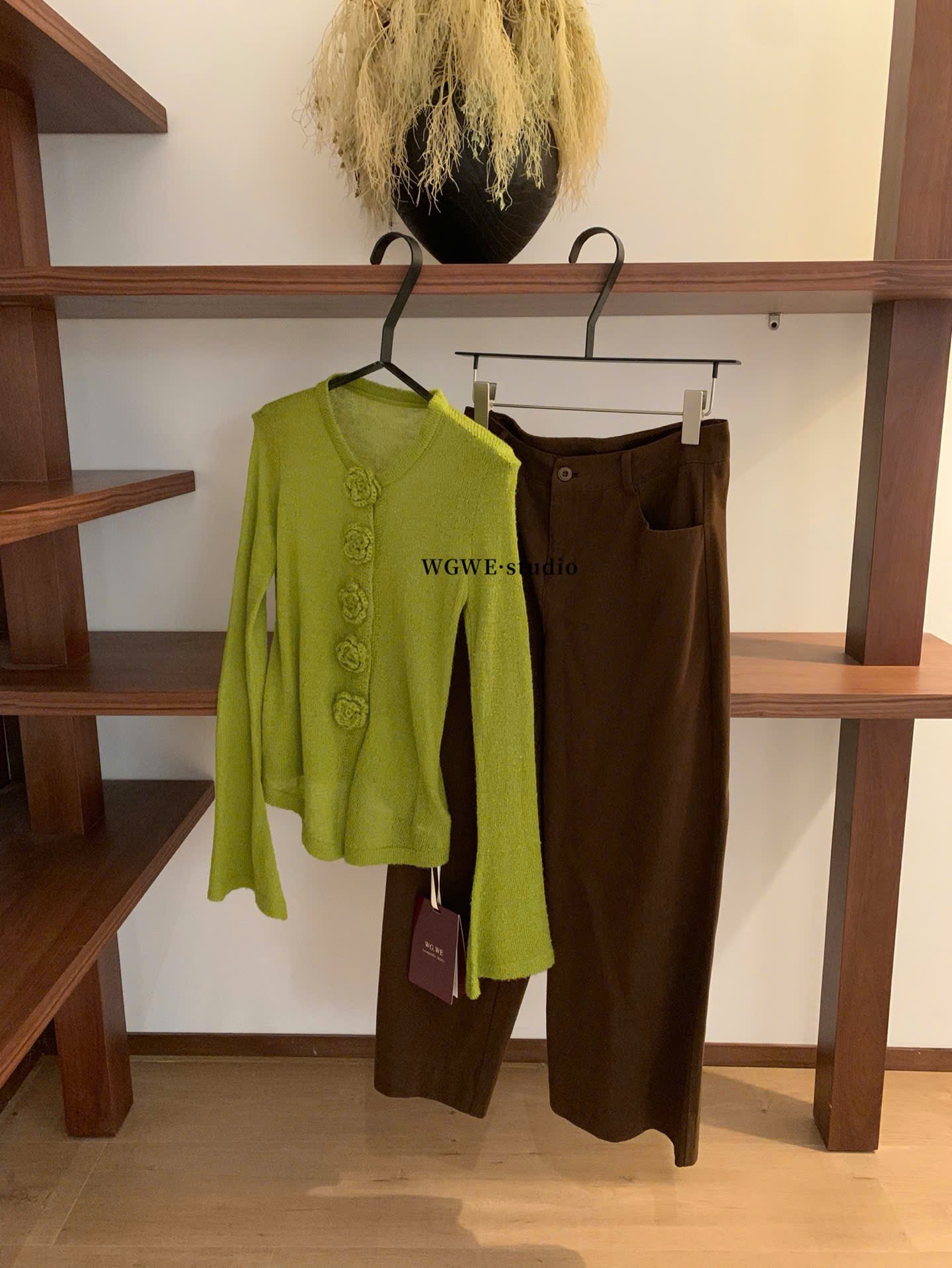 LEN5644 - LEN MỎNG TAY DÀI NÚT BẤM HOA 7469 - MÀU XANH ĐẬU