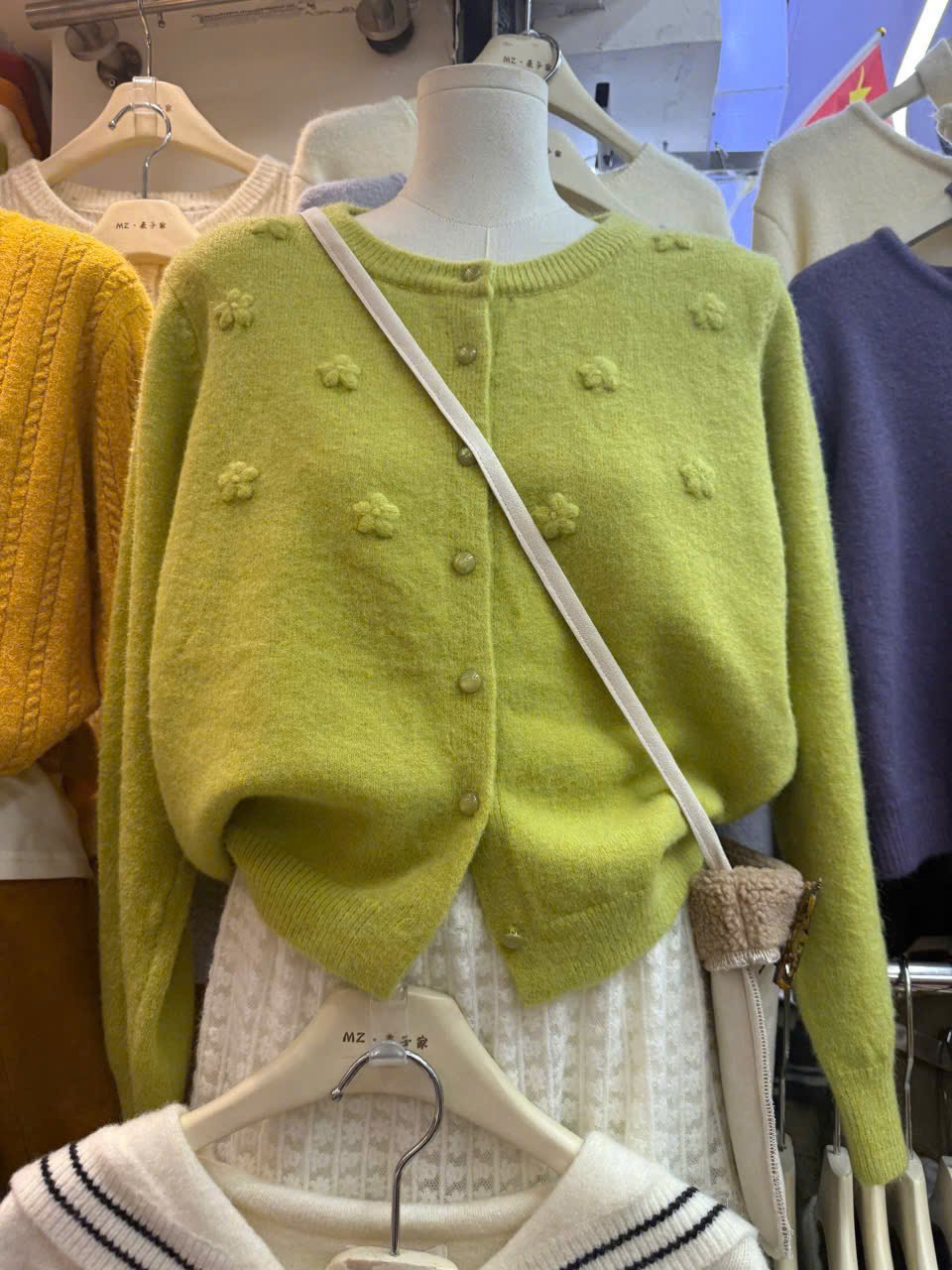 LEN5664 - ÁO LEN THÊU NƠ NỔI MÀU XANH 25231