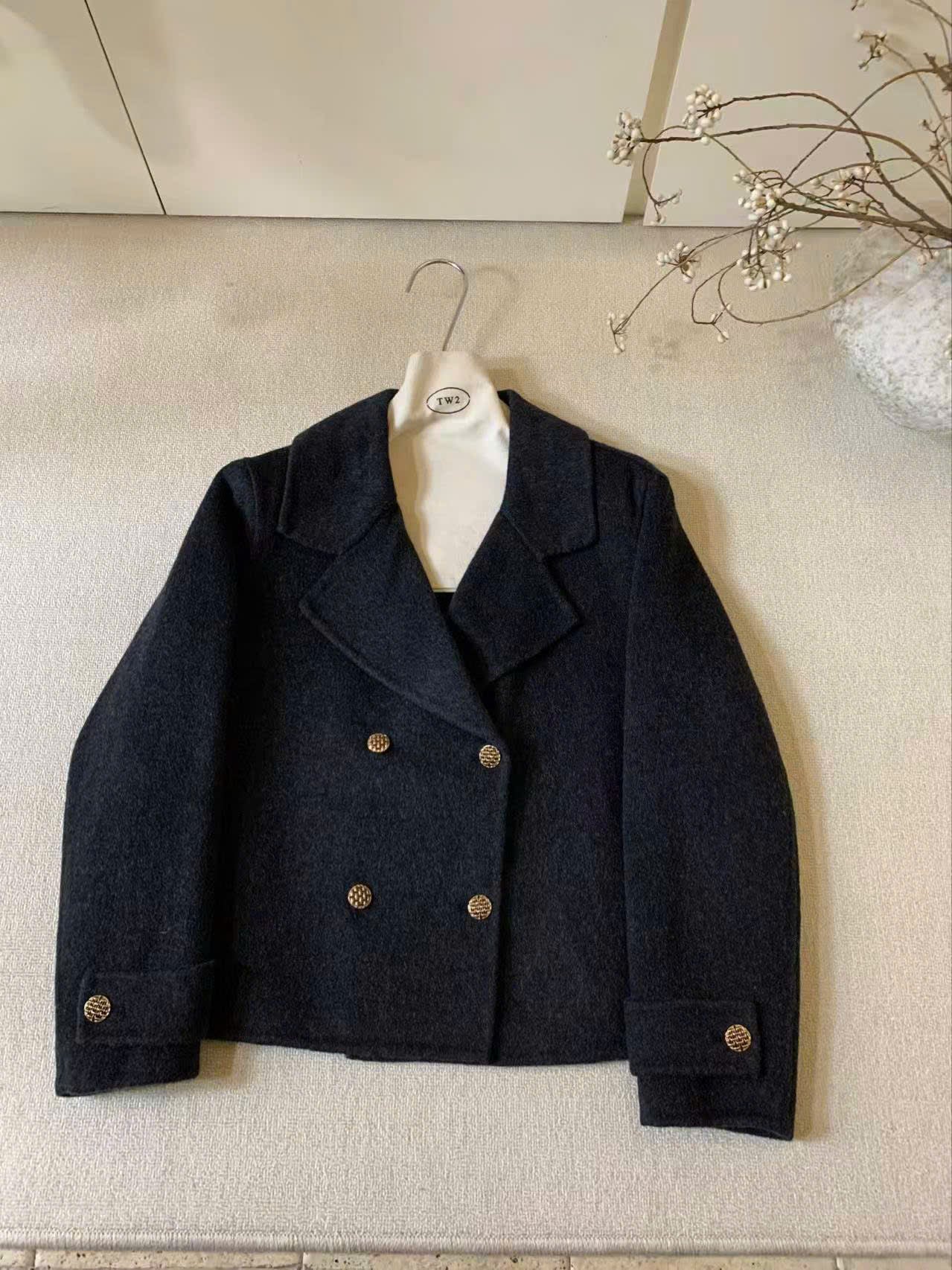 LEN5878 KHOÁC DẠ ÉP CỔ VEST NÚT LƯỚI (XÁM ĐEN) 86055