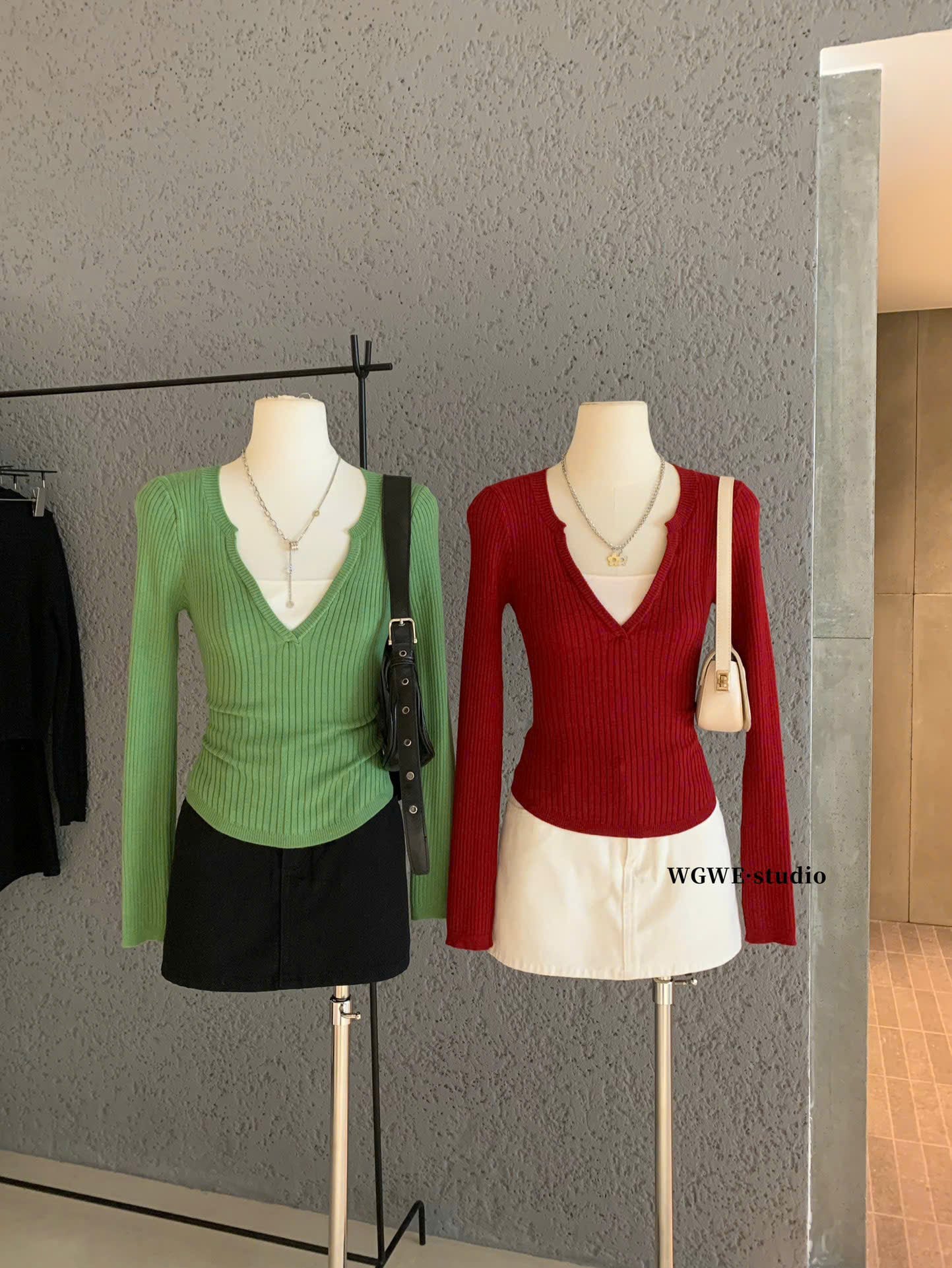 QCC0031- Áo da cổ nhọn màu Rêu