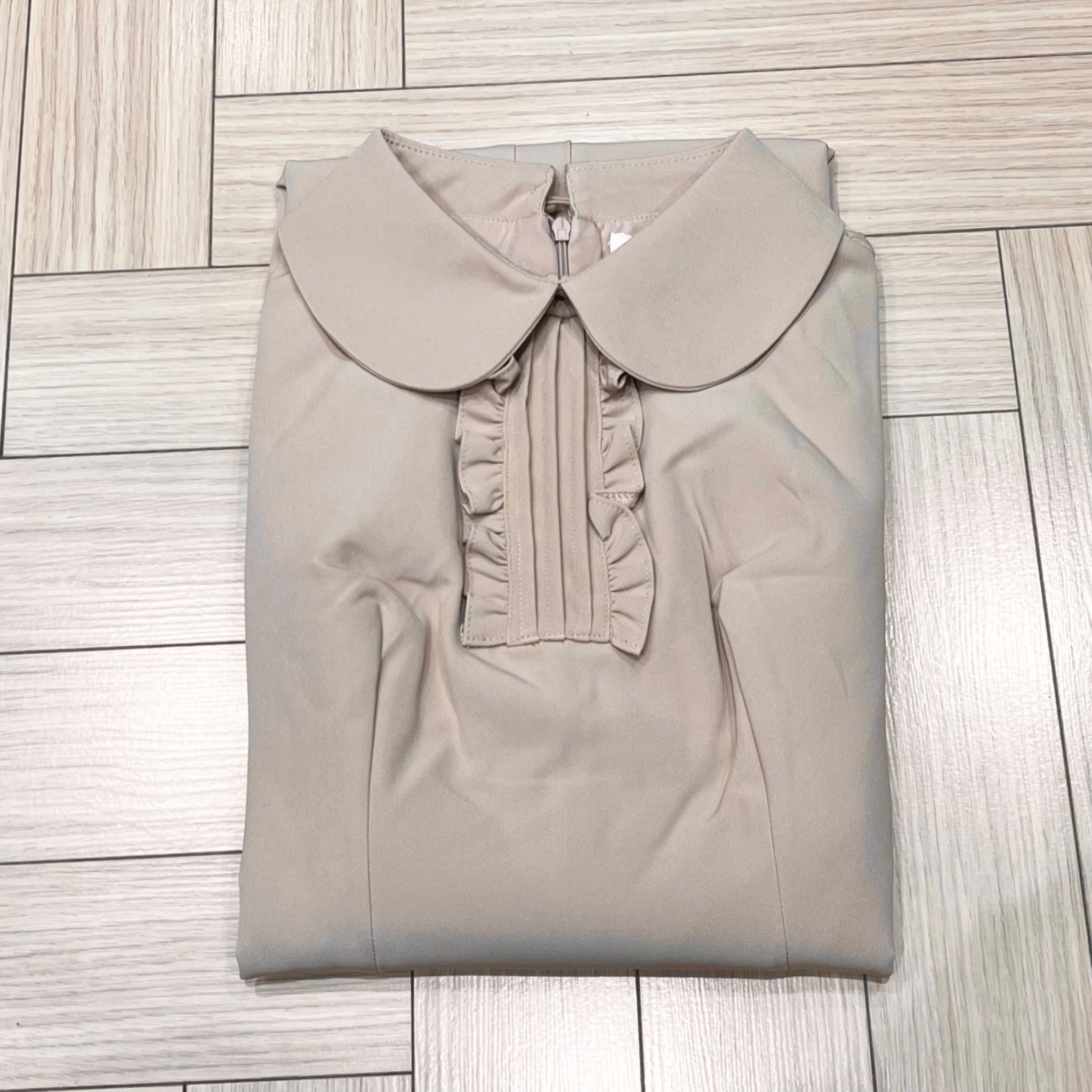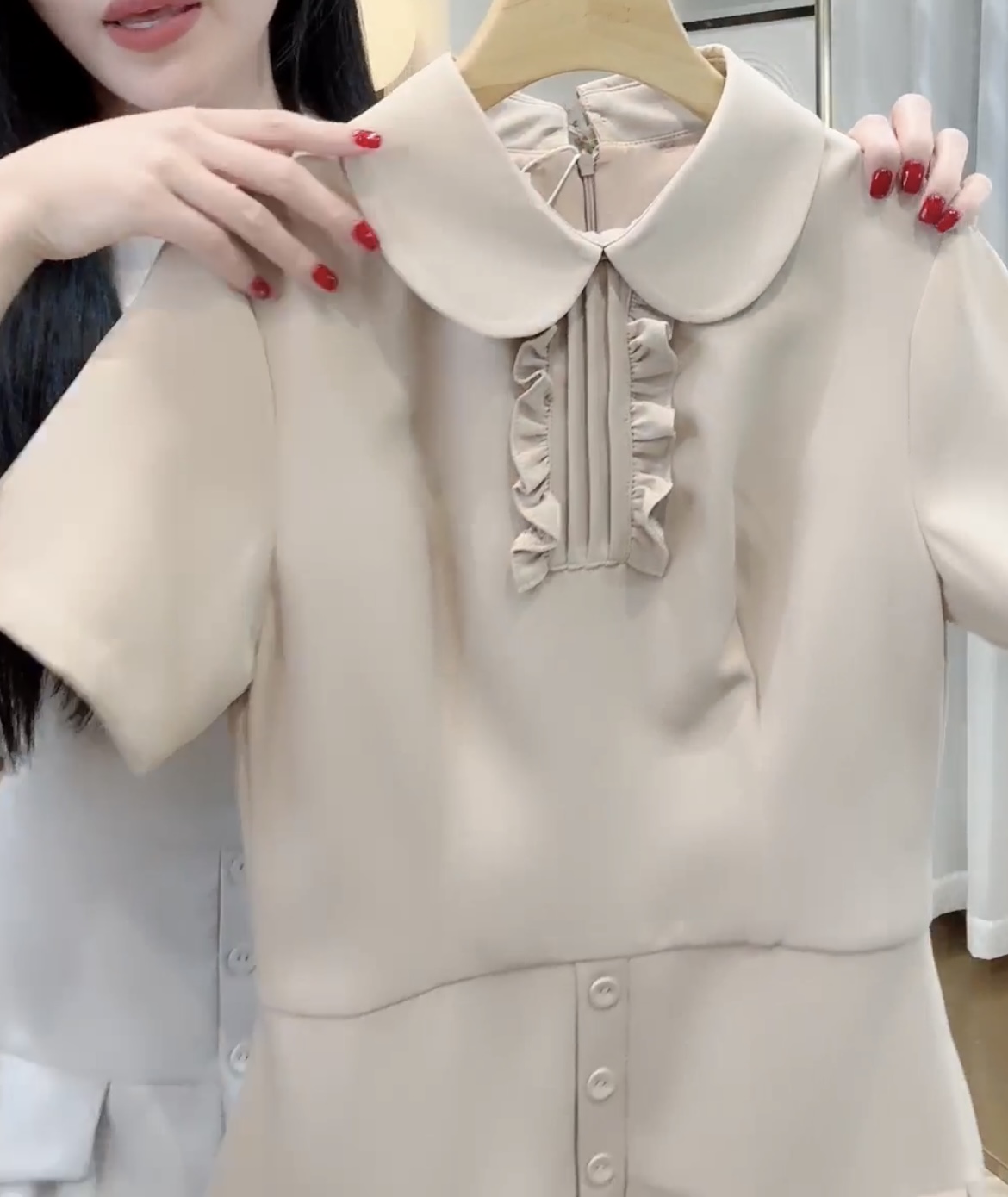 OAK0125 ĐẦM DÀI CỔ SEN PHỐI BÈO (NÂU)