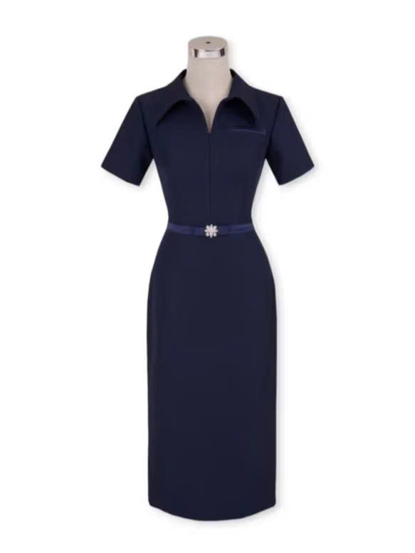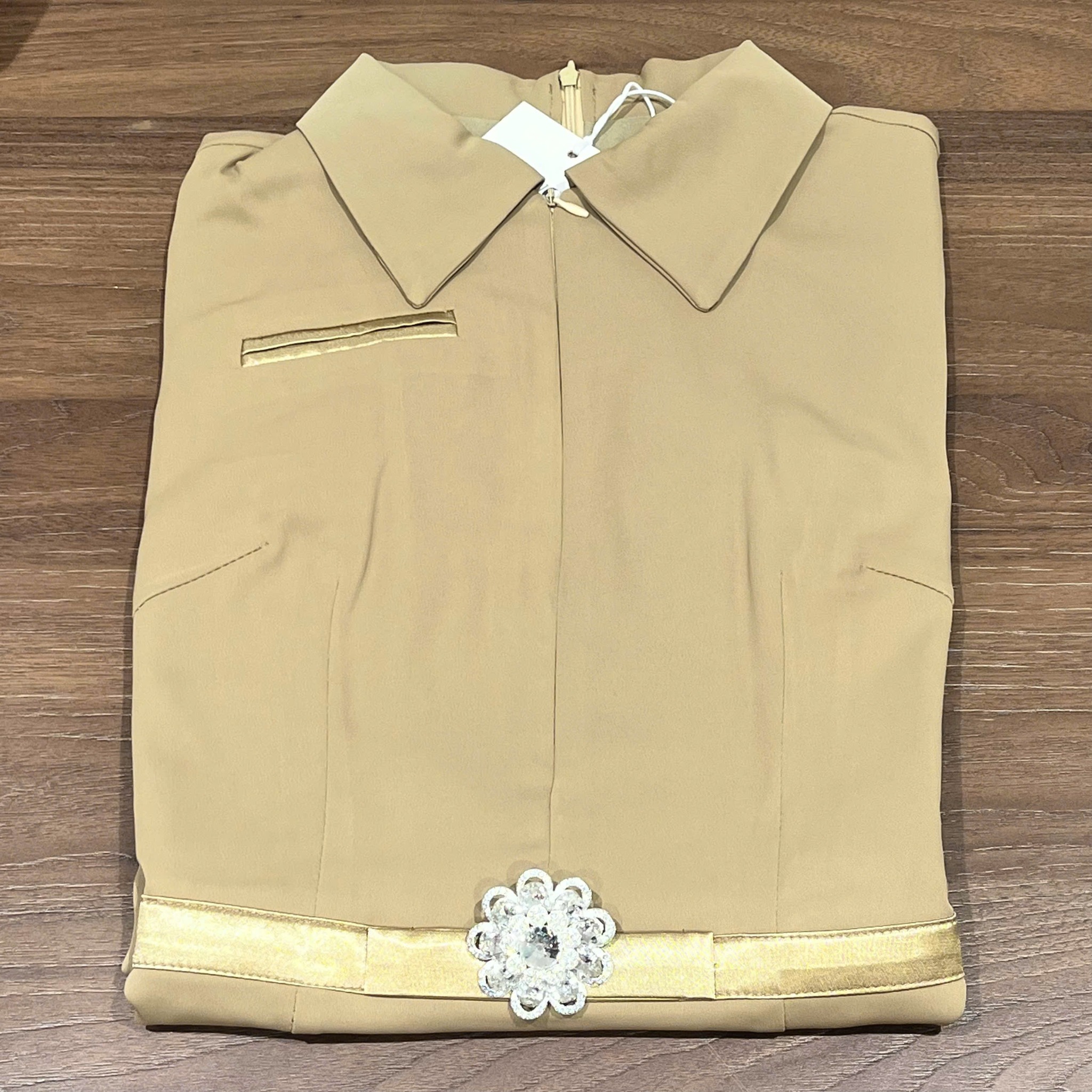 OAK0157 ĐẦM DÀI CỔ SƠMI THANH LỊCH (NÂU)