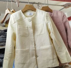 QCC0016- Áo khoác dạ nút khắc hoa phối 4 túi Kem