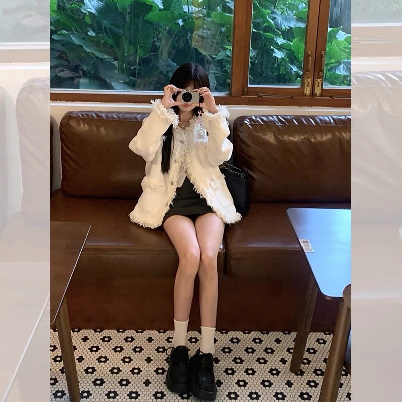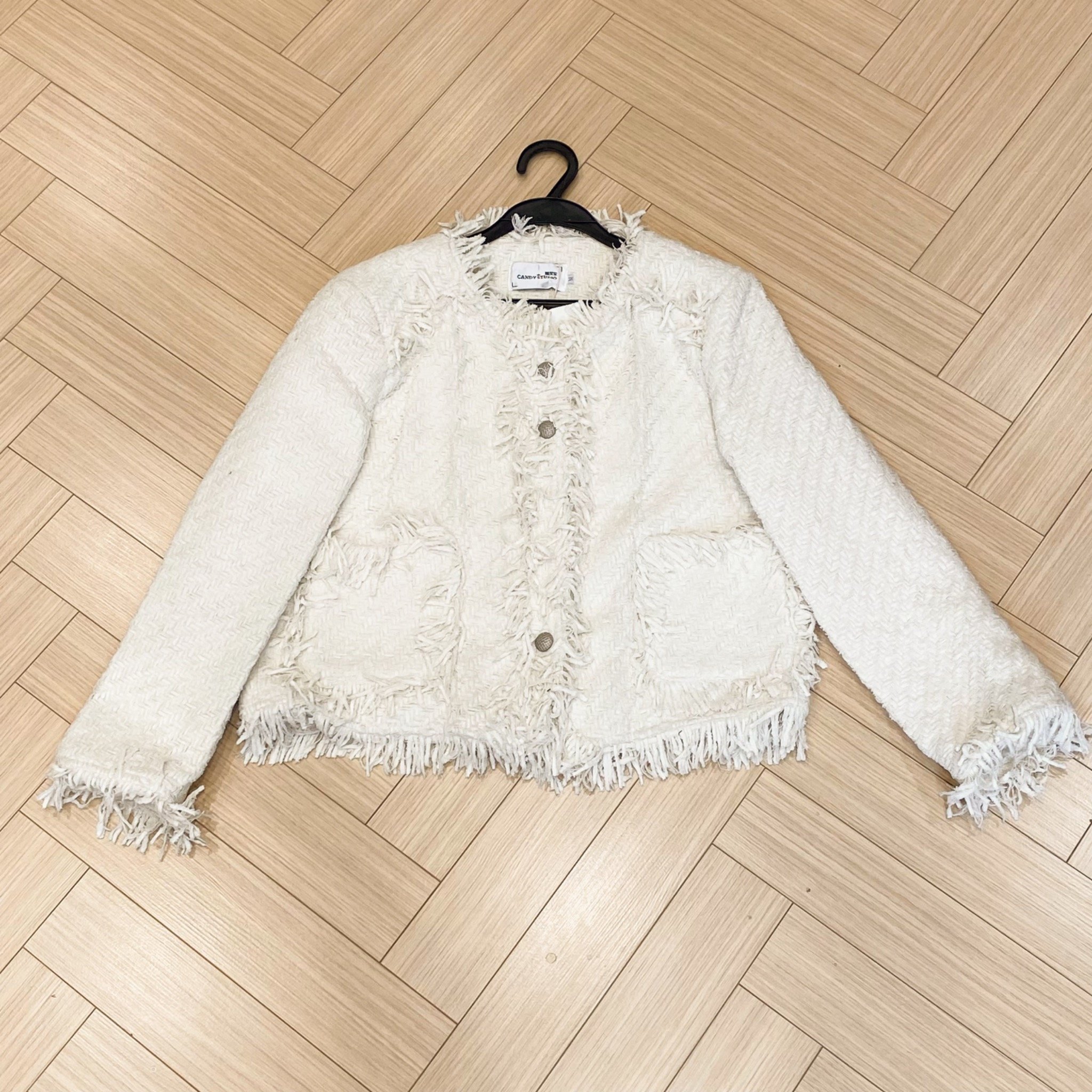 QCC0022-Áo dạ phối túi, viền tua rua Kem