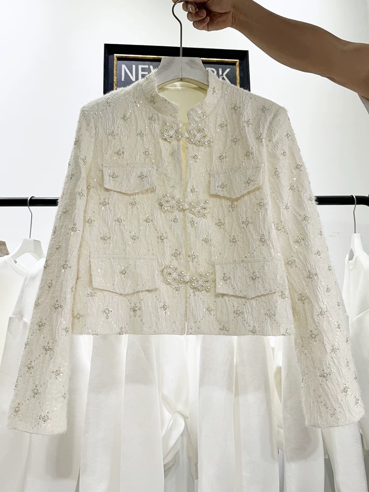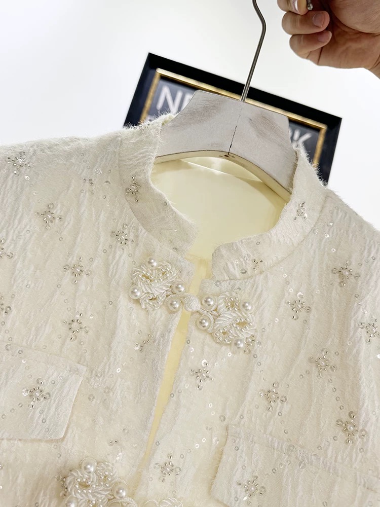 QCC0032 KHOÁC DẠ KIM SA NÚT NGỌC KEM