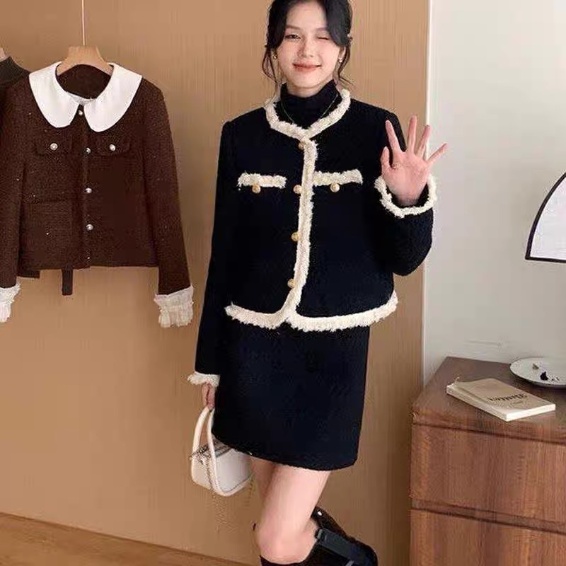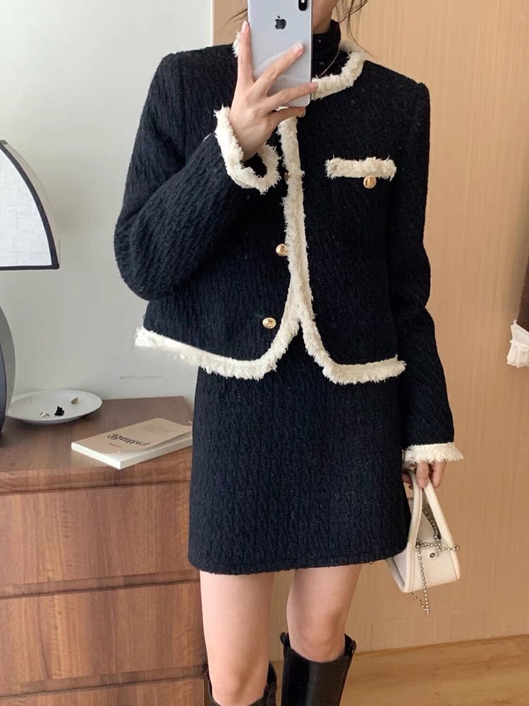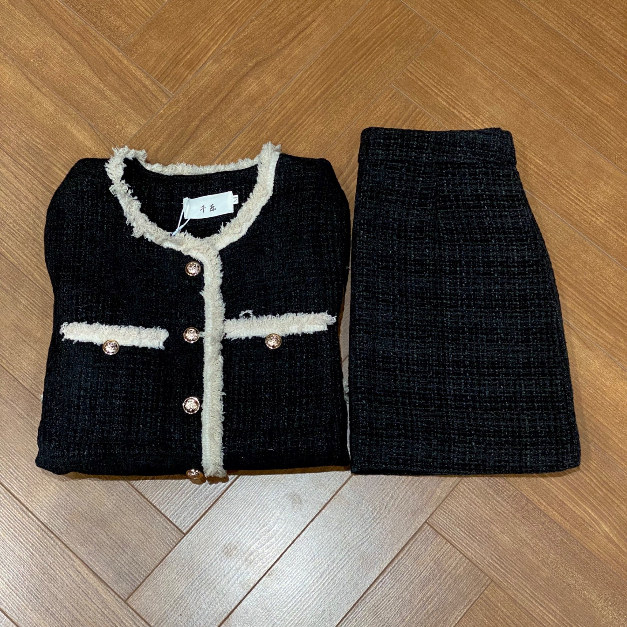 QCC0135 SET DẠ ĐEN PHỐI VIỀN, CV NGẮN