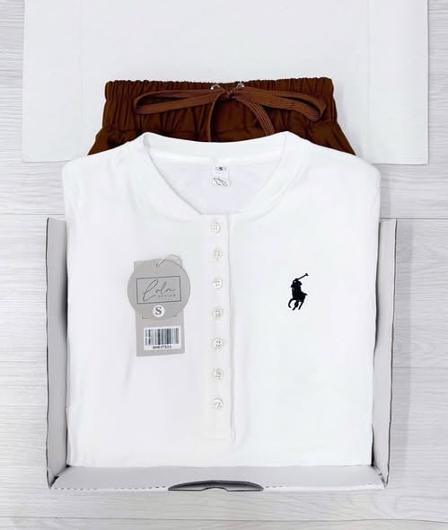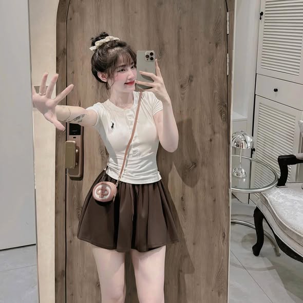 SHE4732 - SET ÁO THUN TRẮNG THÊU NGỰA, VÁY NGẮN NÂU