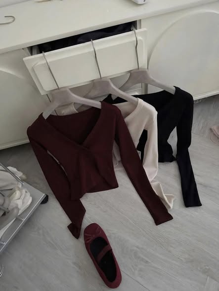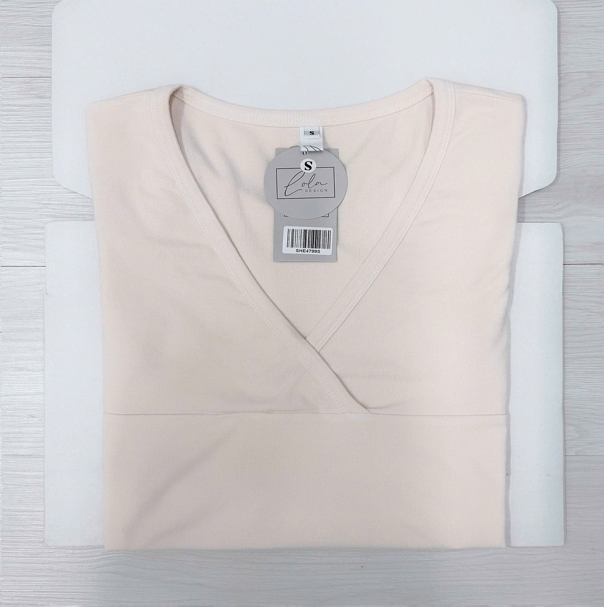 SHE4799 - ÁO THUN TAY DÀI CỔ V (KEM)