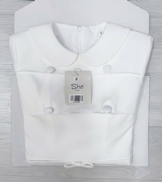 SHE4899 - ĐẦM NGẮN PHỐI NÚT BỌC NHỎ - MÀU TRẮNG ( NHẬN ẢNH SÀN)