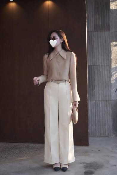SHE4901 - SET ÁO SƠMI TAY DÀI MÀU DA, QUẦN DÀI (KHÔNG KÈM NỊT)