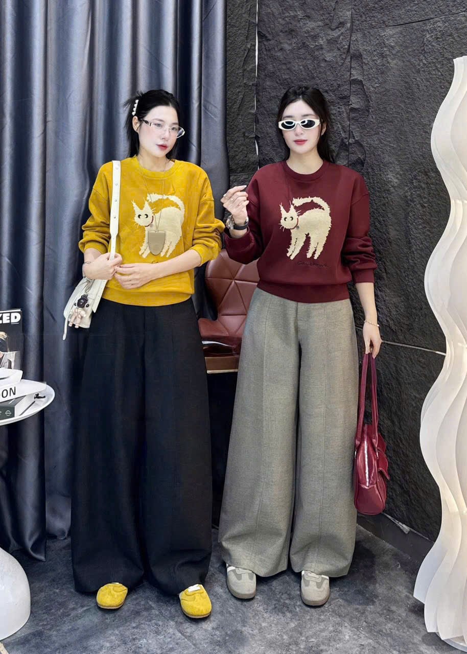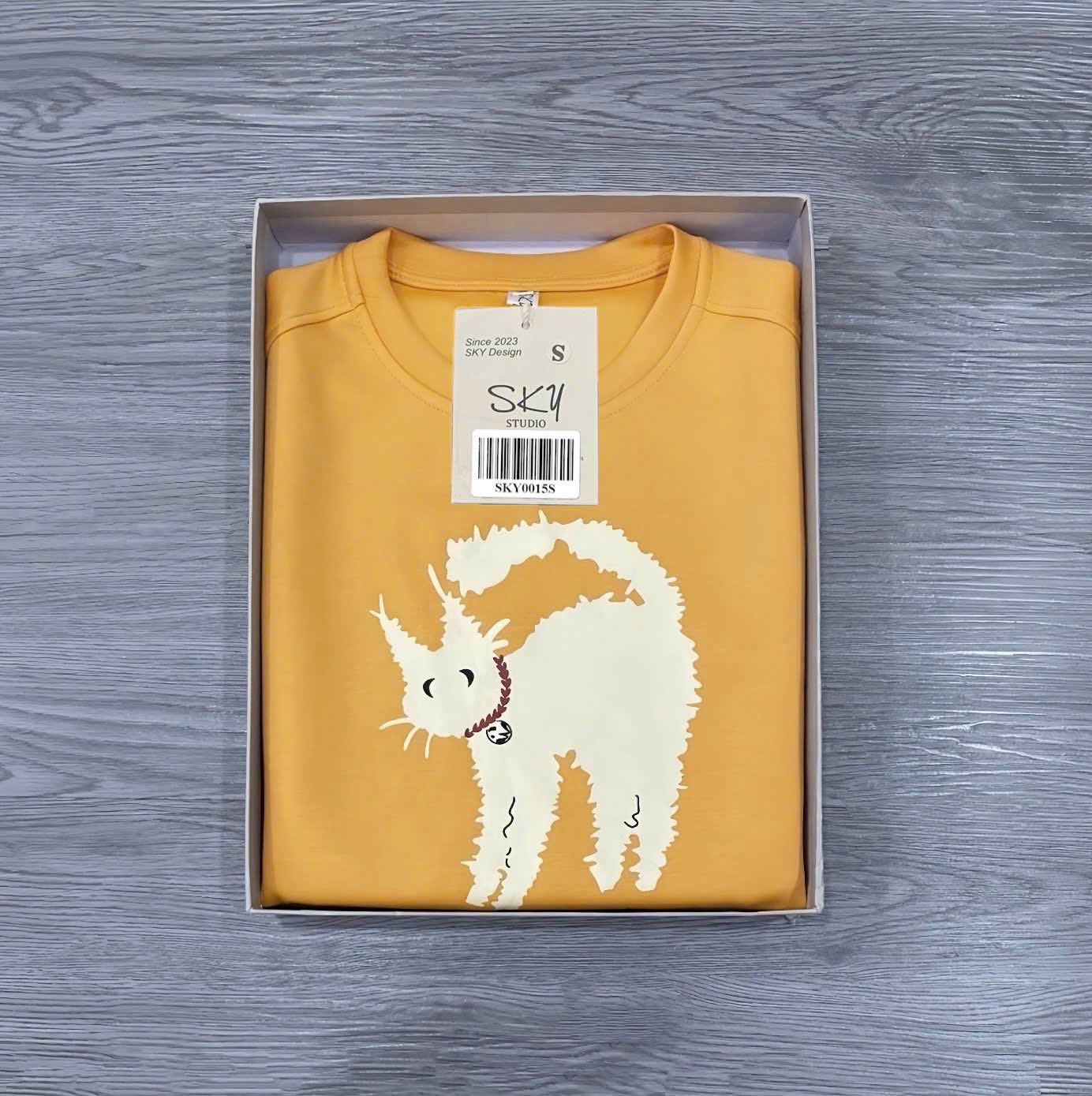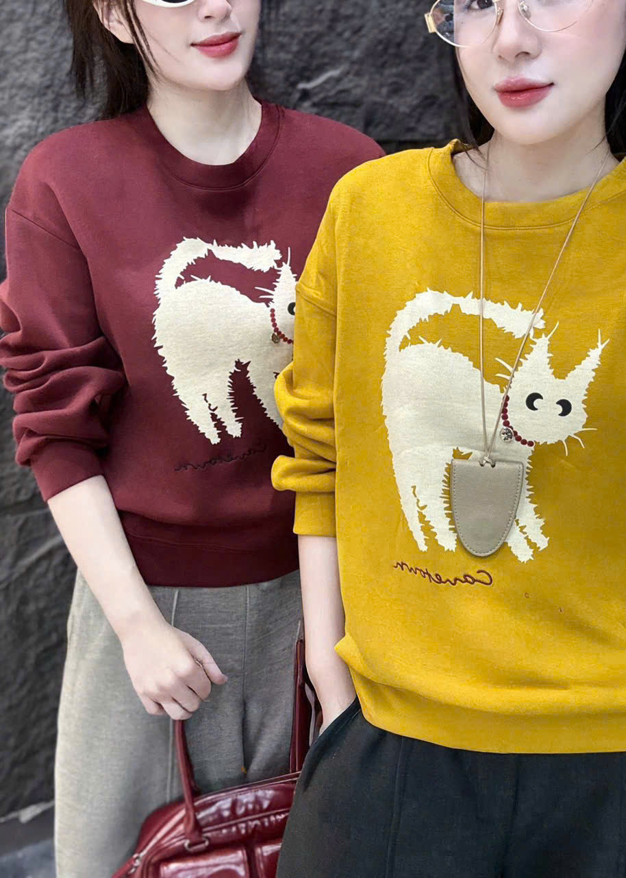 SKY0015 - ÁO THUN LẺ TAY DÀI IN CHÚ MÈO ( MÀU VÀNG)