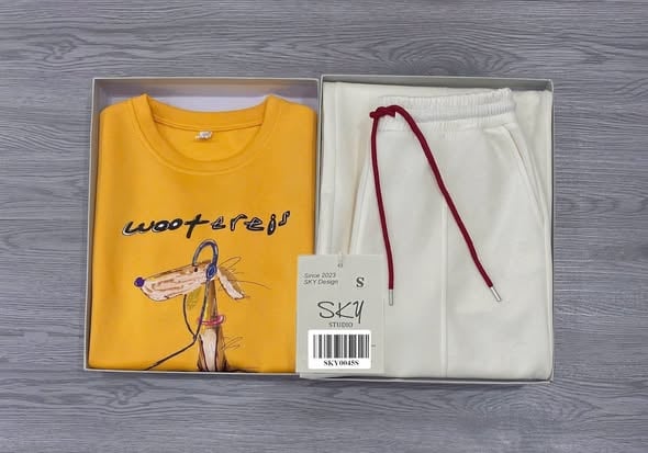 SKY0045 - SET ÁO SWEATER HÌNH CÚN, QUẦN DÀI (ÁO VÀNG)