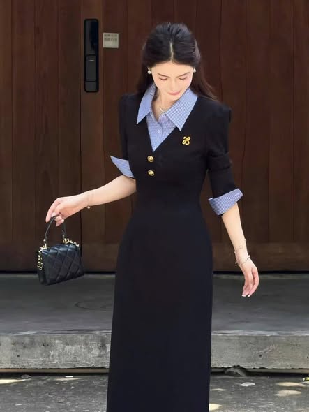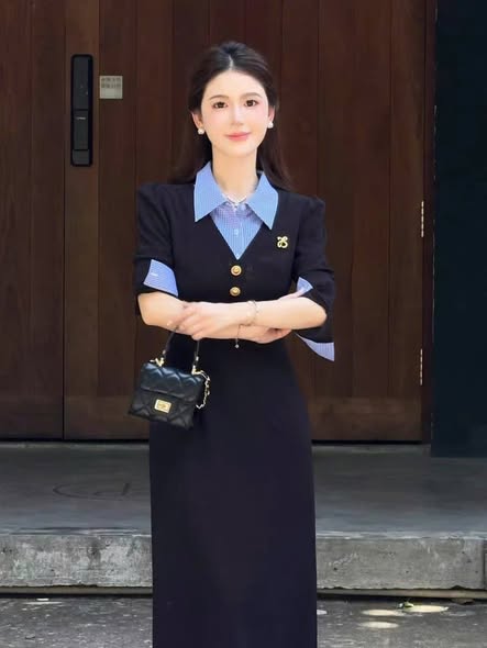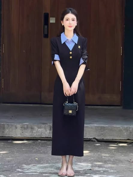 SKY5968 - ĐẦM DÀI PHỐI SƠMI ĐÍNH TAG (XANH ĐEN)