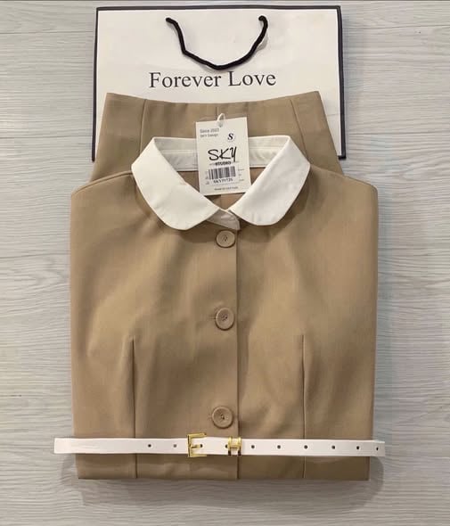 SKY5973 - SET ÁO CỔ SEN, VÁY NGẮN NÂU (KÈM NỊT)